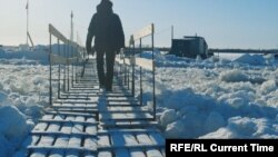 Сравнение не случайно. Грузовики, которые шли по Ладоге, каждую секунду рисковали провалиться под лед. То же самое грозит и островитянам, которые идут по реке в Архангельск. Дело в том, что по Северной Двине проходит международный торговый путь, движение на котором не прекращается даже зимой.