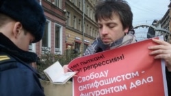 Георгий, активист РСД, стоявший с плакатом в защиту обвиняемых по делу "Сети", считает это естественным: "Маркелов и Бабурова были антифашистами, они имеют прямое отношение к движению, которое в России преследуют. И дело "Сети" – один из вопиющих примеров того, как государство полностью сфабриковало дело против молодых людей, которые не сделали ничего плохого; некоторые из них прямо сейчас умирают в камерах от тяжелых болезней".