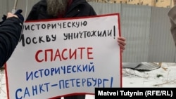 В Петербурге к руинам здания на улице Воронежской, 45 с пикетами вышли местные жители, передаёт корреспондент Север.Реалии. Люди протестуют против незаконного сноса старинного здания.