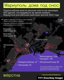 Новые власти Мариуполя гордятся темпами восстановления города. Во дворах, где ещё недавно жили десятки тысяч мариупольцев, сейчас пустыри — там закладывают фундаменты под новые ЖК. Пророссийские власти решили снести как минимум 459 зданий, пострадавших от бомбёжек и горевших весной 2022 года, — свежие распоряжения о сносе выходят каждый месяц.