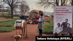 30 октября - День памяти жертв политических репрессий. Жители Петербурга зачитали имена репрессированных в рамках акции "Хотелось бы всех поименно назвать…". Одно из мероприятий прошло около Соловецкого камня, где собралось несколько десятков человек.